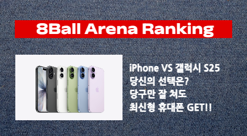 🥇 8볼 아레나 A2E Point 랭킹전 📱 iPhone17 VS 갤럭시 S25 당신의 선택은? 🚀
